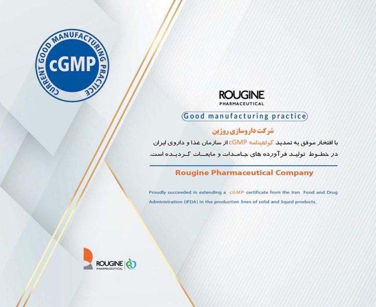 داروسازی روژین دارای گواهی C-GMP مورد تایید سازمان غذا و دارو